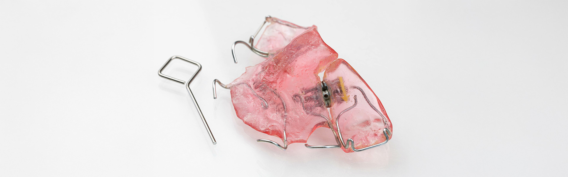 取り外しが可能なプレート状の装置で、患者さん自身で装着の付け外し、お手入れが可能です。装置の真ん中にスクリューがあり、矯正歯科医の指導に従い、少しずつ広げていきます。痛みが少なく、歯を抜かずに矯正ができることがメリットです。ただし、毎日決められた時間、きちんと装着する必要があります。